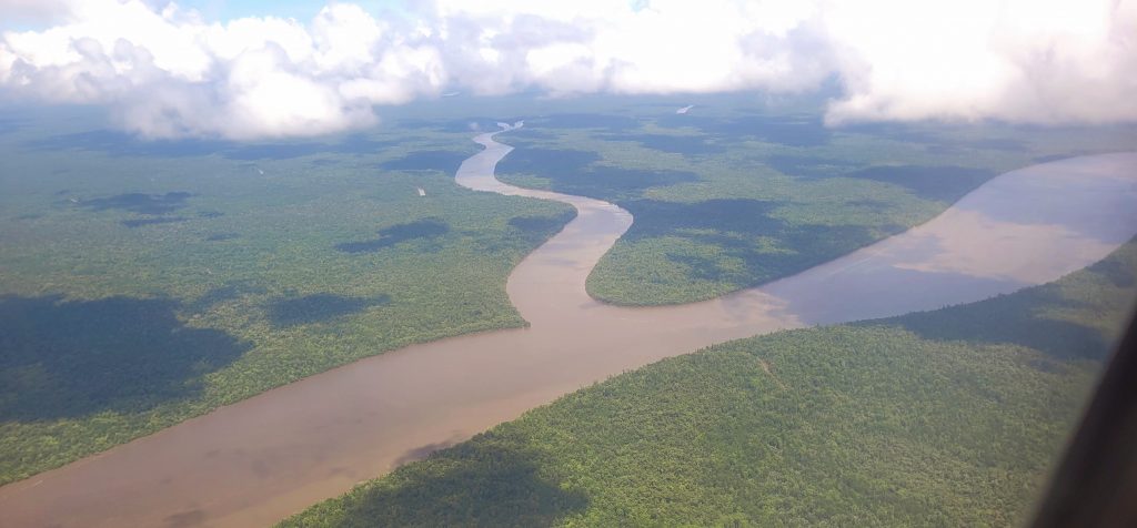 Am Sonntag 11.05. fliegen wir von Sentani (Jayapura) an der Nordküste über das Zentralgebirge mit Sicht auf die Carstensz-Pyramide, dem m⁸it knapp 4.900m höchsten Berg Indonesiens und dem einzigen Gletscher des Landes nach Timika nahe der Südküste, einer wenig strukturierten Transmigrantenstadt als zivilisatorischer Brückenkopf vor den inzwischen zwar weitgehend bekannten, aber doch überwiegend unerschlossenen weitläufigen Küstendschungeln. Das von uns im vorigen Jahr ausgeguckte Hotel für etwaige Freundeskreisgruppen bewohnen wir diesmal selber und können es als tauglich bestätigen.
