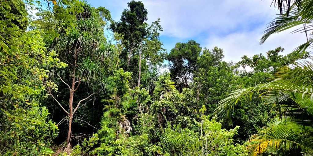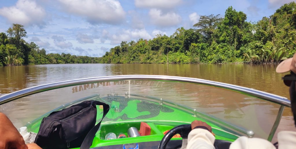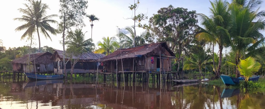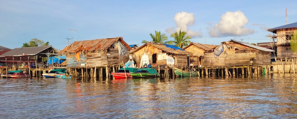 Der nächste Morgen findet uns bei einer Tasse Kaffee und Nasi Goreng in einem verschlafenen Warung, bevor es wieder in den Dschungel geht.  Wir besuchen ein weiteres, besonders eindrückliches Dorf – dann geht es den ganzen Weg wieder zurück, wobei der Bypass heute bei Flut problemlos zügig zu passieren ist.  In TomToms Warung gibt es ein leckeres Abschieds-Abendessen, und wir besprechen die Details etwaiger Gruppenbesuche:  Der Programmpunkt „Tiefland-Stämme“ ist nun jedenfalls geklärt. 🙂