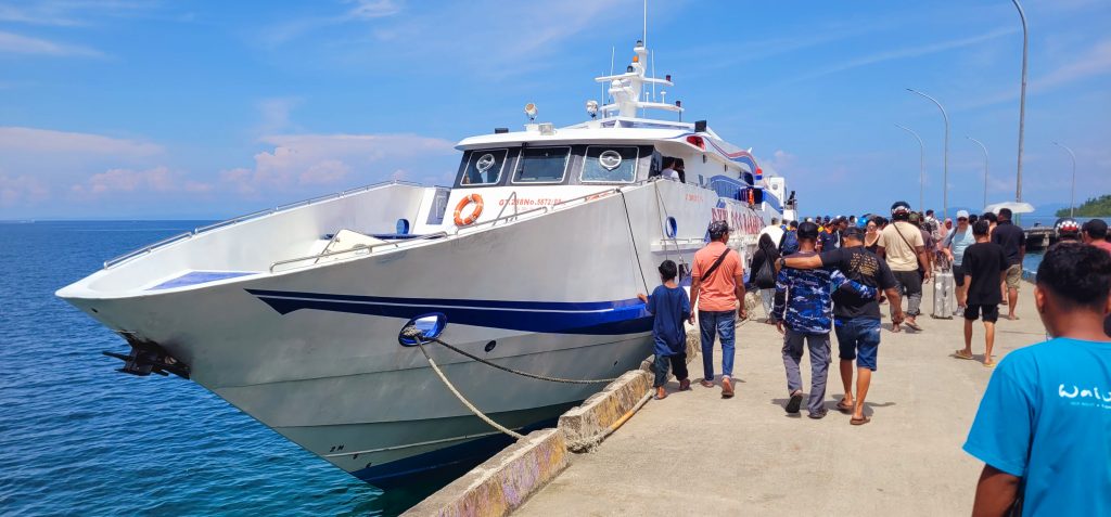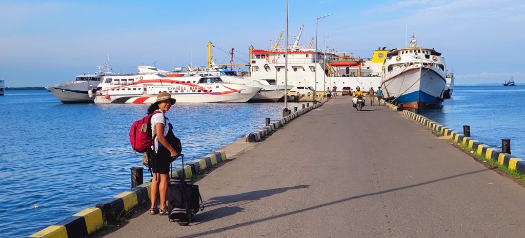 Daher sind wir heute Sonntag 18.05. früh mit der Personenfähre von Sorong nach Waisai, dem Hauptort in R4, gefahren, von wo es per Longboat zu von einheimischen Papua geführten sehr einfachen Homestays und den wenigen deutlich besseren, meist in ausländischer Hand befindlichen Resorts im Archipel weitergeht.  Ein solches Longboat holte vorhin auch Phet und mich am Waisai-Pier ab und brachte uns zu unserer vorgebuchten Unterkunft, einem einfachen aber gemütlichen kleinen Homestay auf der Insel Fam.  Die nette Papua-Eigentümerfamilie brät frisch gefangenen Fisch – spricht aber kein Wort Englisch, so dass wir uns nur mühsam mit Händen, Füßen und Google Translate verständigen können.