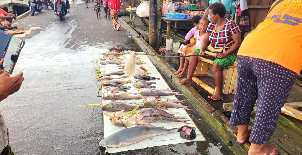 Auf dem Straßenmarkt gib es viel See- und Flussfisch zu kaufen – der kleine Hai im Vordergrund hat zumindest schon seine Flossen eingebüßt