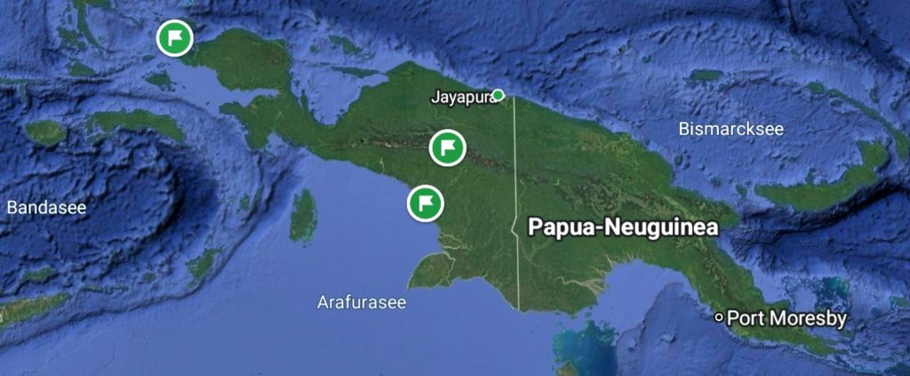 Für ein aufschlussreiches Programm haben wir – von der Papua-Hauptstadt Jayapura an der Nordküste ausgehend – die Highlands (mittig) im Baliem-Hochtal, die südlichen Lowlands des Asmat und den Raja Ampat Archipel vor der Vogelkopf-Halbinsel erkundet