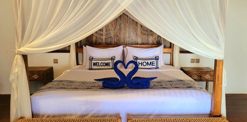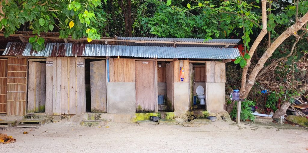 Die Homestays der Einheimischen sind sehr einfache palmblattgedeckte Bambushütten:  Ein leerer Raum mit Matratze drin, mehr nicht – aber oft idyllisch am Strand oder gar auf Stelzen über das Wasser platziert.  Freilich shared bathroom an Land: Ein Loch im Boden und ein Fass mit Wasser daneben mit Kelle, um damit im Loch nachzuspülen oder sich selber abzuduschen, aber kein Waschbecken oder ähnlicher „Luxus“.  Die Verständigung mit den Gasteltern ist schwierig, da nur selten jemand (etwas) Englisch kann.   Fragwürdige Hygiene – dafür relativ preiswert (aber keineswegs billig).